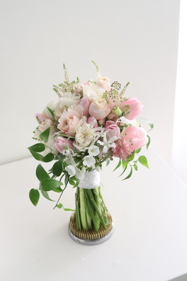 핑크 꽃으로 만든 사랑스러운 동글 부케입니다. 여리여리한 느낌을 선호하는 신부님께 추천드립니다.