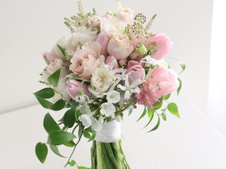 고급스러운 엠마우드 장미와 아스틸베, 화이트 옥시를 믹스한 단아하고 여성스러운 느낌의 부케입니다.